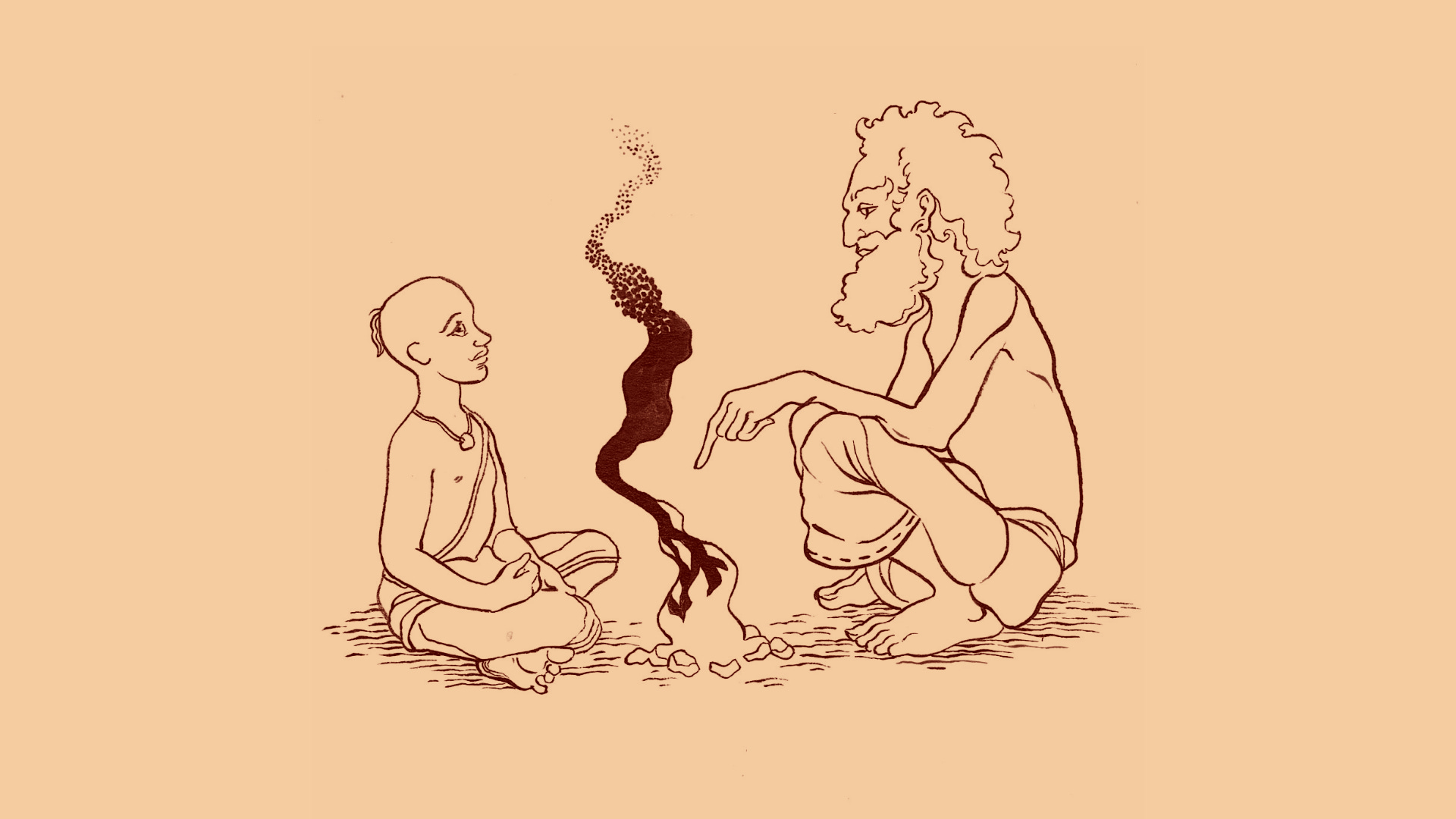 Ugrashravas smiled at the young man and began loading his chillum with big pinches of ganja. Astika stared at this famous sage, this renowned disciple of the great Vyasa, who now squatted on the ground like any beggar, so near to his humble little fire. Suddenly he was consumed by shame and prostrated, pressing his forehead to the Earth. Then he sat up and continued to stare at Ugrashravas. He had so many questions he wanted to ask the sage, but he had gotten into the habit of keeping his curiosity to himself, so he said nothing.